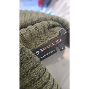 Elevate your wardrobe with this chic BCBGMAXAZRIA short sleeve sweater in size Large. Crafted in a versatile olive green hue, it features a wide ribbed turtleneck collar, ribbed hem and cuffs, and a fitted silhouette. Perfect for layering under jackets or styling solo for a polished, modern look.