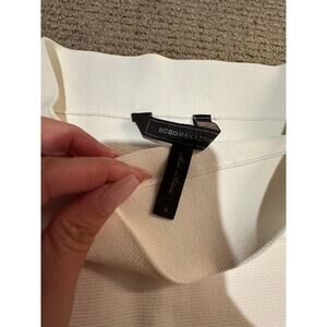 BCBGMAXAZRIA white bandage mini skirt! This stunning bodycon skirt features a flattering stretch knit design that hugs your curves in all the right places. Perfect for a night out, a special occasion, or dressing up a casual look. In excellent pre-owned condition, ready to be a versatile staple in your wardrobe.