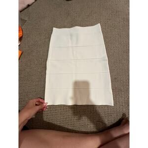 BCBGMAXAZRIA Womens White Bandage Mini Skirt Stretch Bodycon Knit Skirt Size S