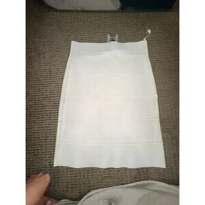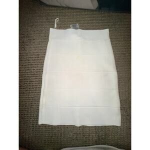 BCBGMAXAZRIA white bandage skirt! Designed to hug your curves, this bodycon mini skirt creates a sleek and flattering silhouette. Perfect for a night out, a party, or dressing up for a special occasion.