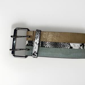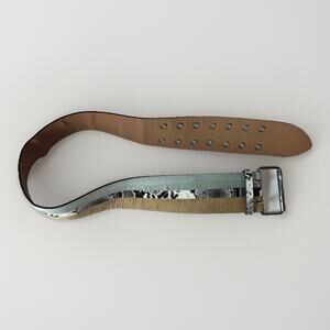 BCBGMAXAZRIA Women’s Wide Belt XS/S Snakeskin Colorblock Silver Buckle