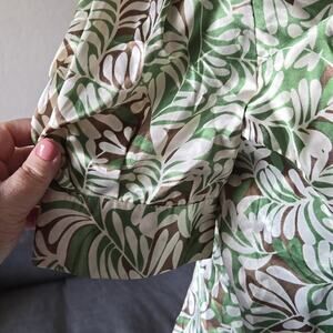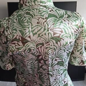BCBGMAXAZRIA Green and White Patterened Wrap Blouse Short Sleeve