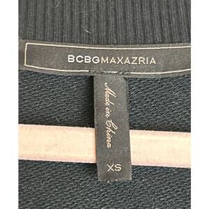 Keywords: BCBGMAXAZRIA lace top, women’s XS black sweatshirt blouse, abstract lace knit top, BCBG ribbed pullover, BCBG casual chic top, women’s designer lace sweatshirt, BCBG half sleeve blouse
