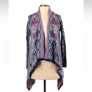 BCBGMAXAZRIA Wool Moriah Ethnic Open Front Cardigan Jacquard Aztec Size XXS