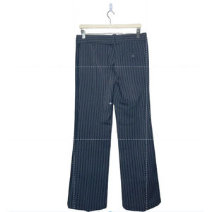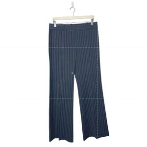 BCBGMAXAZRIA Wool Stripe Pants Womens 4 Black Gray Black Ribbon Detail Flare Leg
