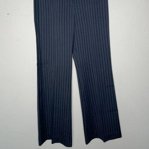BCBGMAxazria Wool Blend Striped Pants Womens 4 Black Gray w/ Black Ribbon Detail Flare Leg, Hook Zipper Close, Back Button Close Pocket, Belt Loops, Stretch, Polyester Wool Rayon Spandex, Dry Clean