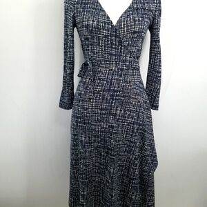 BCBGMAXAZRIA Gorgeous True Wrap Dress in Gray, Black and White Colored Print. Vneck, Long Sleeves, Assemetric Hemline. Great for Work. Beautiful & Suitable for Numerous Occasions! 22