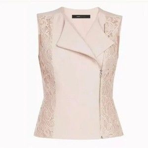 BCBGMAXAZRIA XS Carrie Lace Peplum Biker Vest Blush Pink Side Zip-Up
