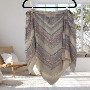 BCBGMAXAZRIA XXS 100% Silk Off-Shoulder Blouse Neutral Boho Top Multi-Color