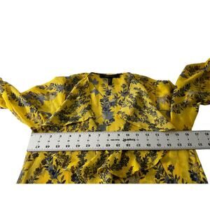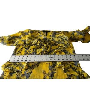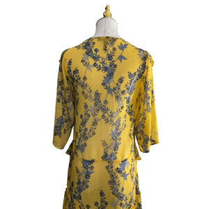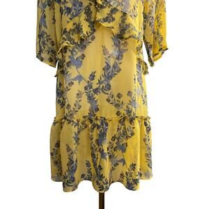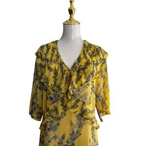 BCBGMAXAZRIA XXS Yellow Dress Floral V-Neck Ruffle Tiered Hemline Polyester
