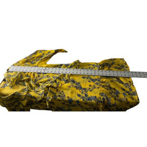 This stunning BCBGMAXAZRIA yellow floral dress is perfect for adding a touch of elegance to your wardrobe. The dress features a lovely floral pattern with shades of blue and brown on a vibrant yellow background, making it an eye-catching piece for any occasion. The design includes a V-neckline with ruffle details and a tiered hemline, creating a flattering and feminine silhouette. The dress is fully lined for comfort and has a lightweight, airy feel, perfect for warm weather.