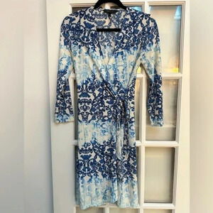 BCBGMAXAZRIA “Adele” Blue / White Wrap Dress Size S