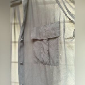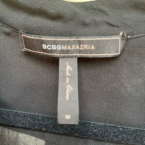 The BCBGMAXAZRIA black long-sleeved blouse is an elegant and sophisticated garment. Made from a sheer fabric, it offers a delicate and airy look, perfect for layering. The blouse features chest pockets that add a practical yet stylish touch. Wrapped buttons provide a unique and refined detail, enhancing the overall design. In a size Medium, this blouse offers a comfortable fit that is both flattering and versatile, suitable for both professional and casual settings. Great condition.