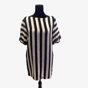 BCBGMaxAzria black & white vertical stripe mini shift dress. Size S. P2P 17.5"; waist 17"; hip 18".
