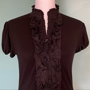 BCBGMAXAZRIA blouse, ruffle placket with stand-up collar, XS