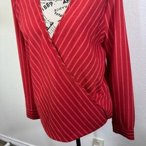 BCBGMAXAZRIA blouse wrap front Women's Red Striped long sleeve size small Top