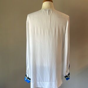 BCBGMAXAZRIA cross over / wrap drape BLOUSE built in cami white / stripe accent