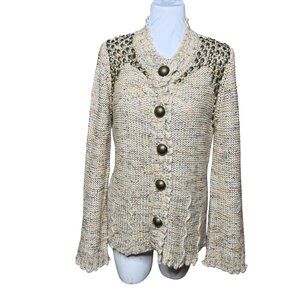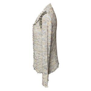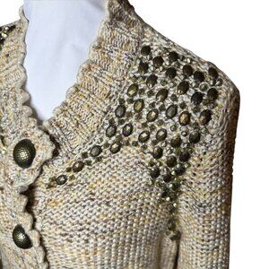 BCBGMaxazria embellished front open cardigan button up in a combination of shades of brown and cream size large.