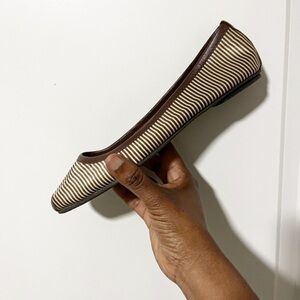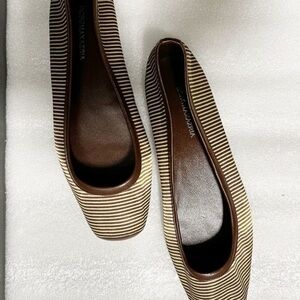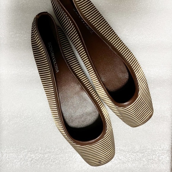 BCBCMaxazria flat ballerina in great condition textile upper leather synthetic sole
