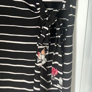 Black and white with floral detail front tie dress.
