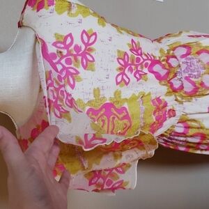 BCBGMAXAZRIA neon abstract floral asymmetrical ruffles summer midi dress