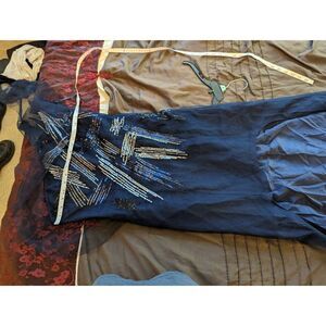 BCBGMAXAZRIA one shoulder blue high-low silk mesh metallic paint dress sz 8 euc