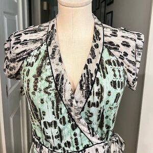 BCBGMAXAZRIA pale green and gray wrap summer short sleeve dress