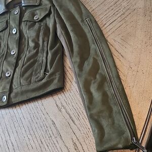BCBGMAXAZRIA size S dark green suede moto jacket
