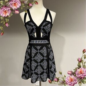 BCBGMAXAZRIA sleeveless v-neck mini Dress with cut out details size 0