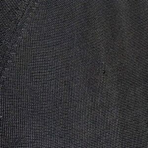 Black with white stripes on the middle. There’s a tiny flaw on one of the sleeves. (See photo)