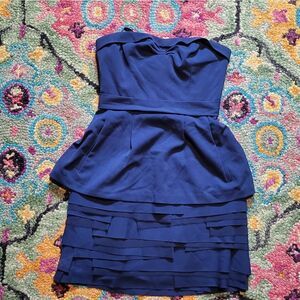BCBGMAXAZRIA Annika Strapless Layered Cocktail Dress Blue 2