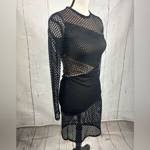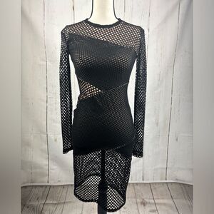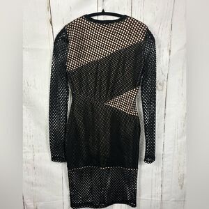 BCBGMAXAZRIA Asymmetrical Mesh Body-Con Dress Black Nude