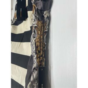 Color: “Baroque” print in gold and silver. Black and cream stripes
