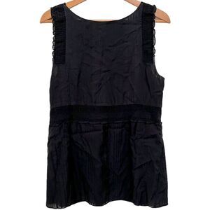 BCBGMaxAzria Sleeveless Blouse, Black, Shear with lining, v-neck, Ruffle shoulder straps, peplum Size M