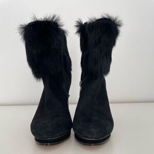 BCBGMAXAZRIA Black Suede Booties with Faux Fur