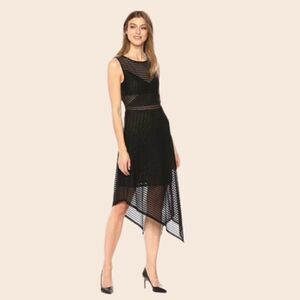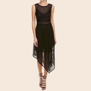 BCBGMAXAZRIA Black Sheer Leona Asymmetrical Midi Dress Size M