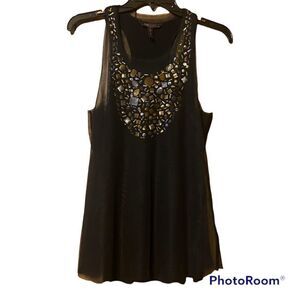 BCBGMAXAZRIA Embellished Tulle Black Sleeveless Tank Top Size XS