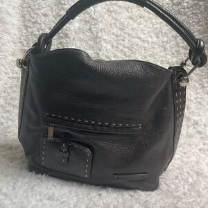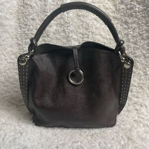 BCBGMAXAZRIA Hobo Leather dark Brown Bag Stitching accent,silver tone hardwares