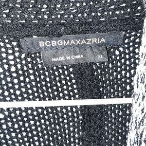 BCBGMAXAZRIA Knitted Open Duster Cardigan Size xl black/white/grey