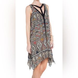 BCBGMAXAZRIA Tian Coral Reef Handkerchief Hem Geometric Tank Dress Small