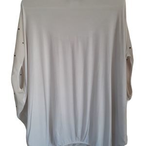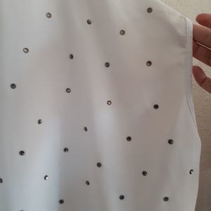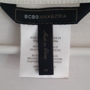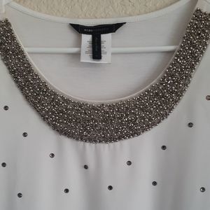 BCBGMAXAZRIA top, white with beautiful beading long the neck and silver rhinestones on front of shirt, used but in great condition