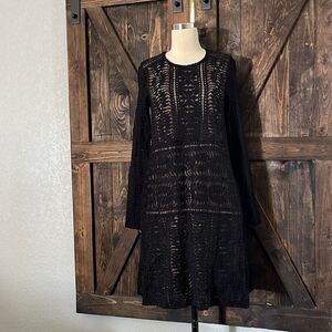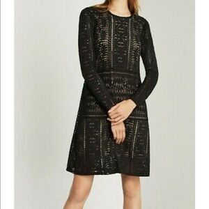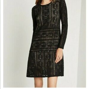 BCBGMAXAZRIA WAVING VINES LACE LONG SLEEVE SHIFTH DRESS BLACK