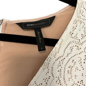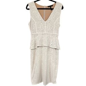 BCBGMAXAZRIA White Lace Dress W/ Tan Underlay Size Medium