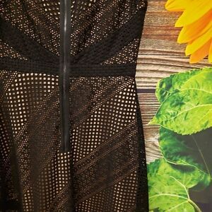 BCBGMAXAZRIA black/tan midi lacy dress Preowned