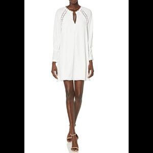 This classic silhouette crafted from sleek satin back crêpe is embellished with a split V-neck line, intricate BoHo lace at the yolk, and long elegant bishop sleeves. Pull over. 100% polyester satin back crêpe. BoHo circle lace.
