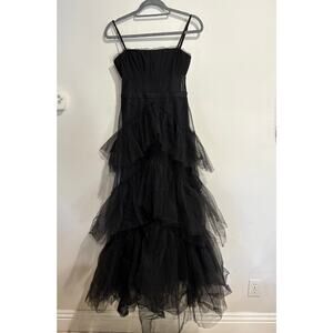 BCBGMAXazria Oly Tiered Ruffle Tulle Corset Maxi Gown Black Women's Size US 4