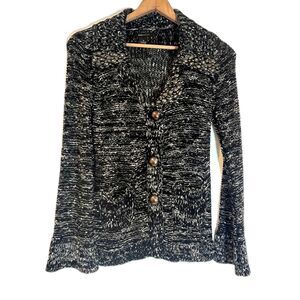 BCBGMAxazria Black White Chunky Knit Cardigan Y2k Sweater Small Beaded Collar