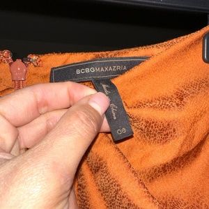 Beautiful, never real worn. 100% polyester, very flowy and smooth. 33inches front, and waist is 15 inches.