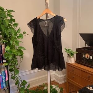 This flirtatious ruffle lace top has only been worn once or twice. The ruffles make for a romantic look perfect to pair with dark jeans.