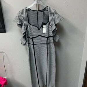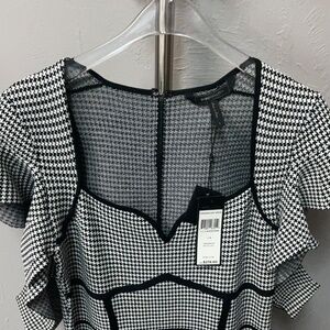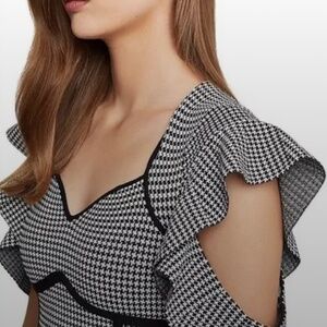BCBGMaxAzaria Structured Houndstooth Jacquard Sheath Dress Flutter Sleeve Size L
